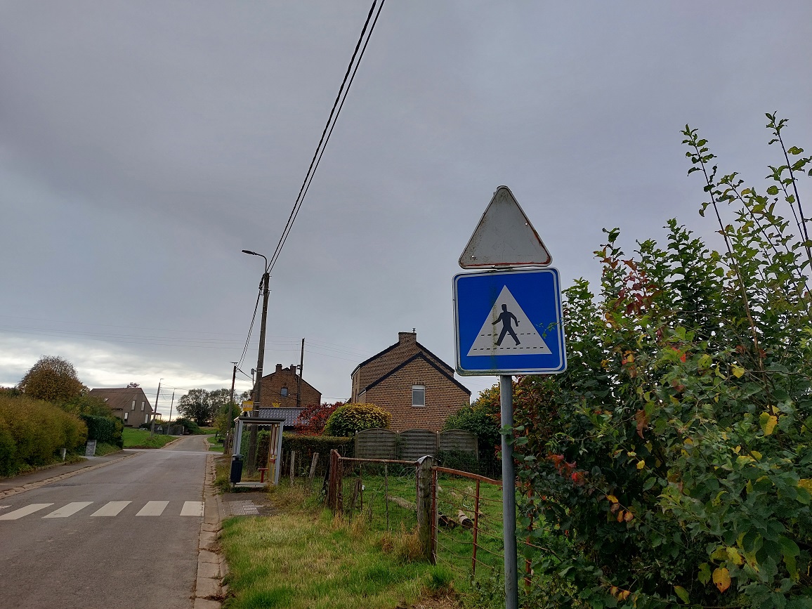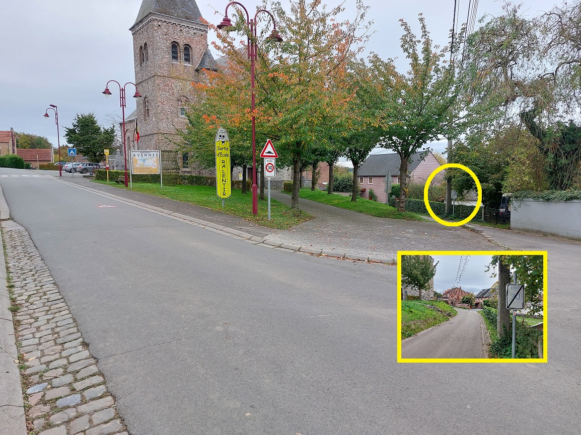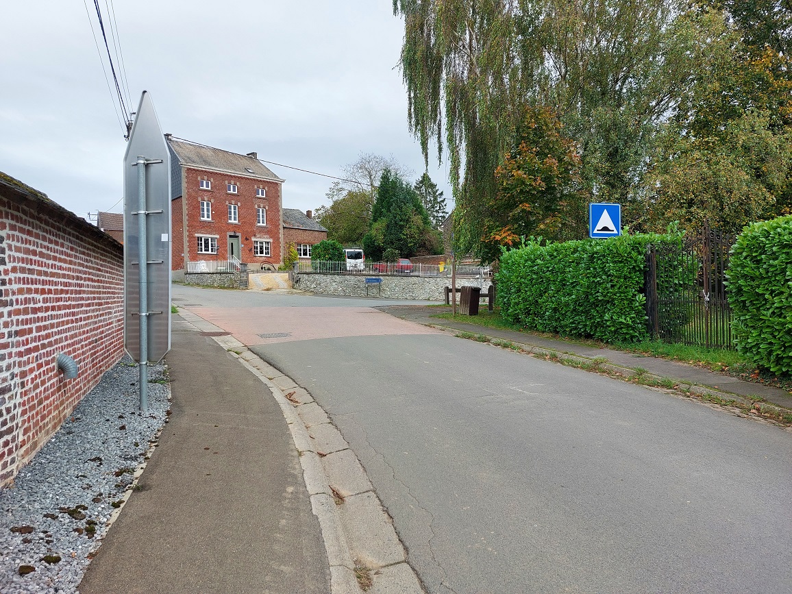 En venant de Ciplet on peut constater que le début de la Zone 30km/h est située sur le trottoir dd l’église. Dans la petite rue située juste à côté, il y a un panneau de fin de Zone 30 km/h qui n’a pas lieu d’être puisque le panneau annonçant une Zone 30 se trouve après le carrefour. Je privilège donc de déplacer le panneau Zone 30 en amont de ce carrefour OU de supprimer celui annonçant la fin de la Zone 30 et ceci pour rester logique par rapport aux préceptes du Code de la Route.