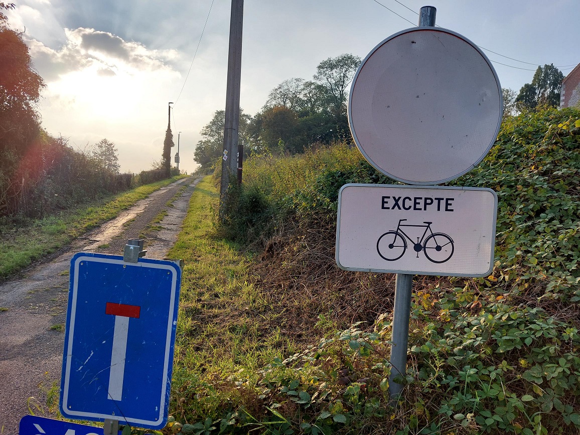Chemin de remembrement est interdit à toute circulation exceptée celles reprises sur le panneau F99c. Ce chemin est celui situé à l’intersection des rues de la Havée, de a rue Jean-Jaurès et celle de Ciplet
