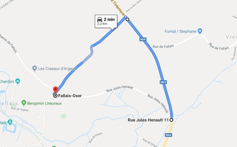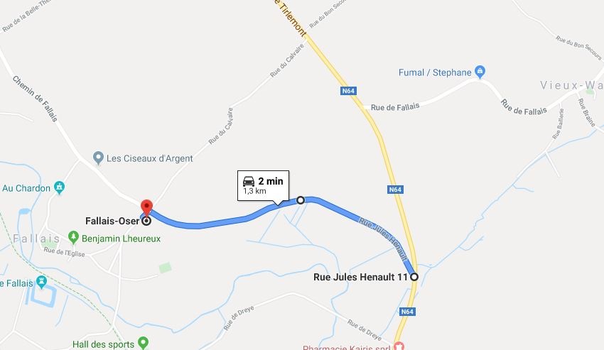 La rue Jules Henault est une voirie de 1 295 mètres et de 3,50 mètres de largeur sur toute sa longueur (excepté sur le pont du RAU des étangs qui est de 3,30 mètres et au niveau des habitations qui est de 4,40 mètres). Celle-ci est située à Fallais. La rue accueille une dizaine d’habitations, une crèche privée reconnue O.N.E. ainsi qu’une exploitation agricole. Un panneau, pourtant très visible, de type C3 interdisant la circulation à tous véhicules et comportant un panneau additionnel de type « Excepté déserte locale » est apposé de chaque côté de la voirie.