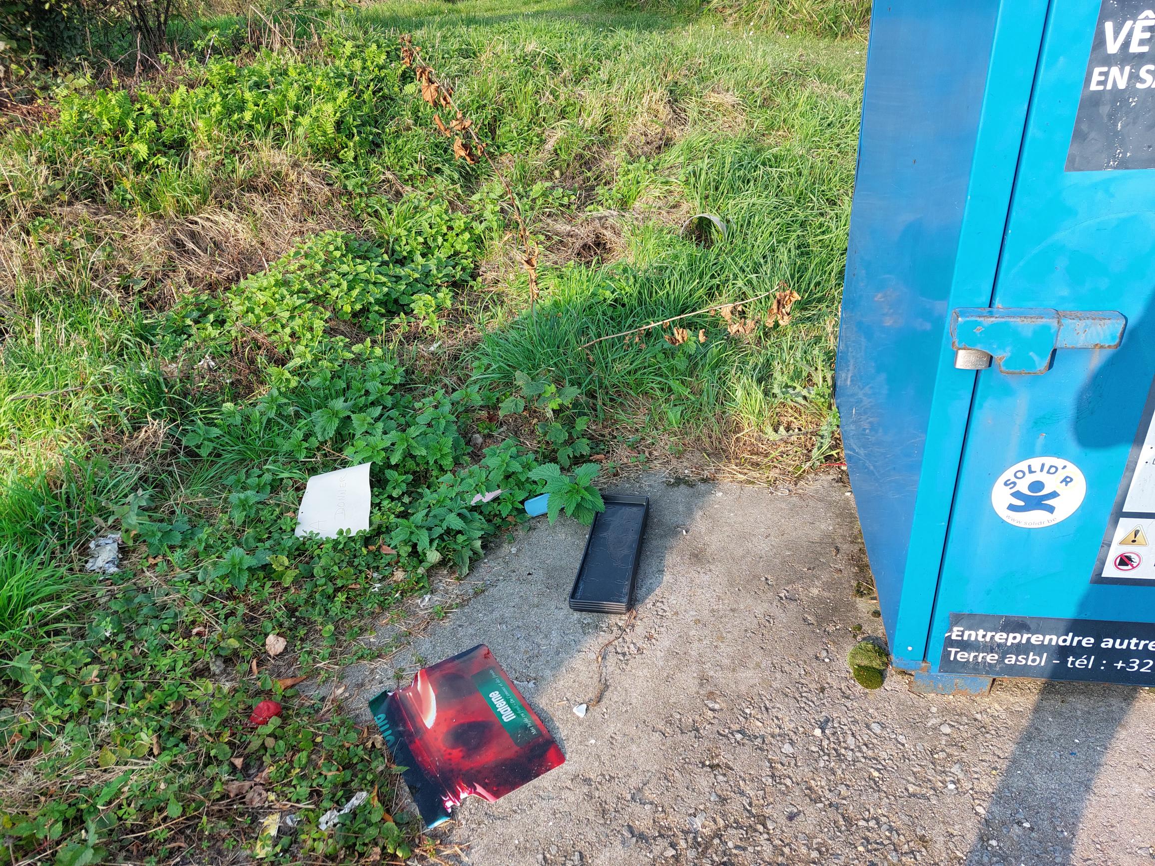 C’est n’est pas la première fois que nous constatons des déchets autres que ceux pour lesquels des bulles à verres devrais-dire ! Et le constat ne s’arrête pas qu’aux bulles à verre puisque nous pouvons aussi le constater dans nos campagnes. Quelques personnes se croient le droit de pouvoir polluer l’espace des autres. C’est pourquoi j’avais proposé au Conseil Communal, il y a déjà plusieurs mois, que l’on puisse faire l’acquisition de caméra spécifique afin que les autorités puissent créer un effet de dissuasion auprès de ces pollueurs.
