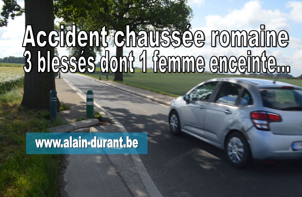 Un nouvel accident de la circulation entre trois véhicules s’est produit ce samedi 12 septembre 2020 à 13h00 sur la chaussée romaine. Vu l’état de santé d’une dame enceinte, celle-ci a été transportée à l’hôpital du MontLégia. Deux autres personnes blessées dans l’accident ont été transportées à la clinique CHC de Waremme.