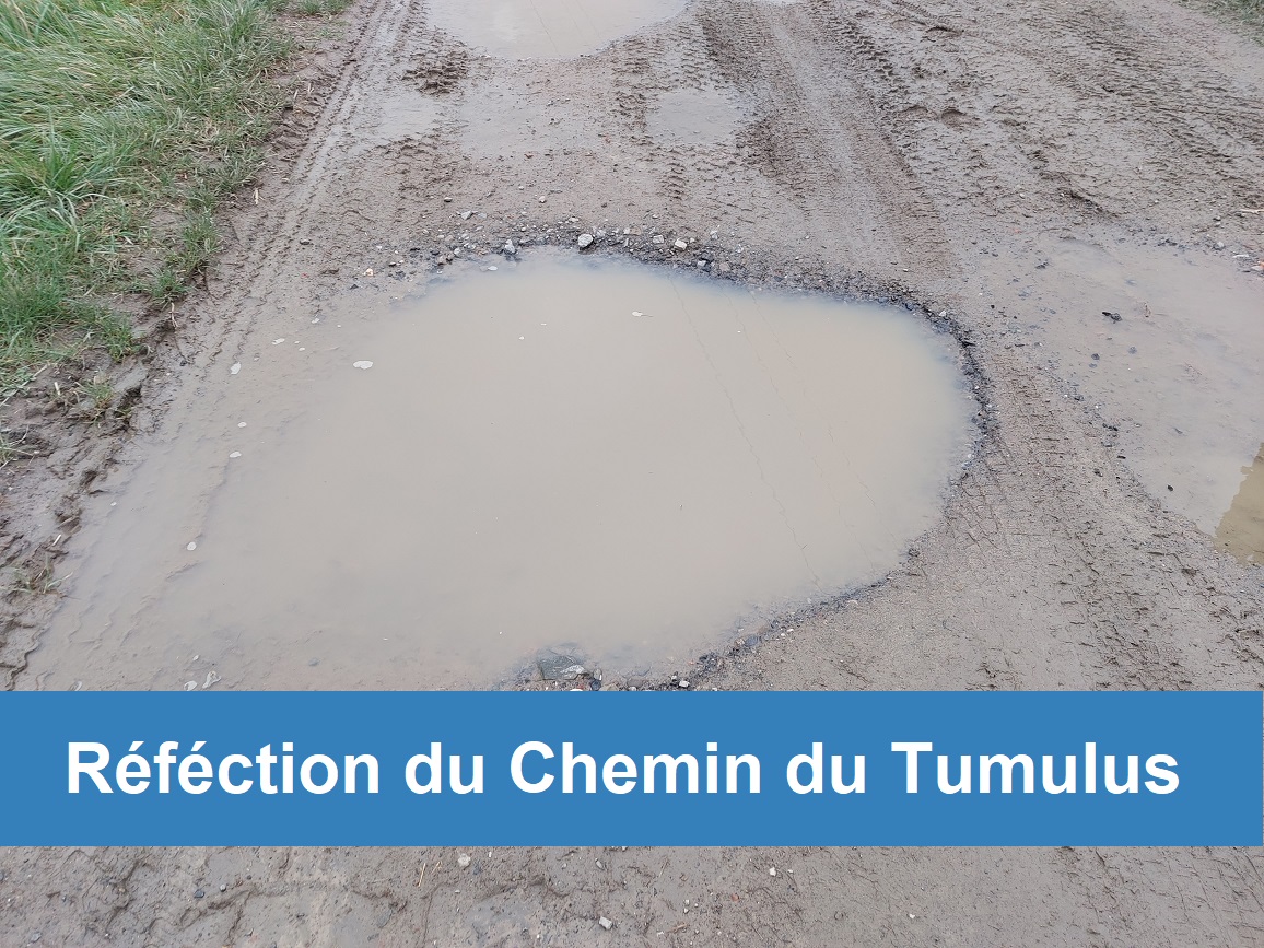Le 25 octobre 2021 lors du Conseil Communal, il y a donc une année, je faisais la demande de réfection du chemin du Tumulus qui était dans un état plus que déplorable. Lors du Conseil Communal du 21 novembre 2022, il a été décidé que la réfection de ce chemin de promenades allait être réfectionné pour une somme de 26.045 euros TVAC