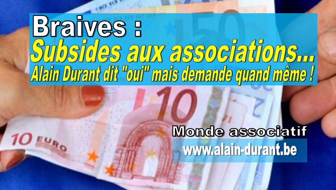 Alain Durant, ne trouve pas que la fanfare, qui fait rayonner notre commune bien au-delà de Braives, reçoit trop de subventions, par contre, en ce qui concerne les autres associations, elles n’en reçoivent pas assez…